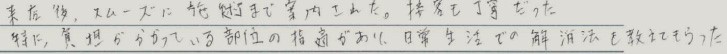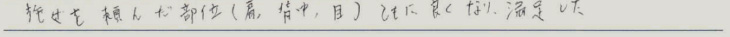 施術を頼んだ部位(肩、背中、目)ともに良くなり満足した。
